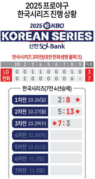 한화 이글스가 벼랑 끝에서 기적 같은 승리를 거뒀습니다. 서울 원정 1·2차전을 모두 내준 한화는 29일 대전 한화생명 볼파크에서 열린 한국시리즈 3차전에서 LG 트윈스를 7-3으로 꺾으며 시리즈 반격의 발판을 마련했습니다. 특히 8회말에 터진 6득점 빅이닝은 그야말로 ‘기적의 순간’이었습니다.